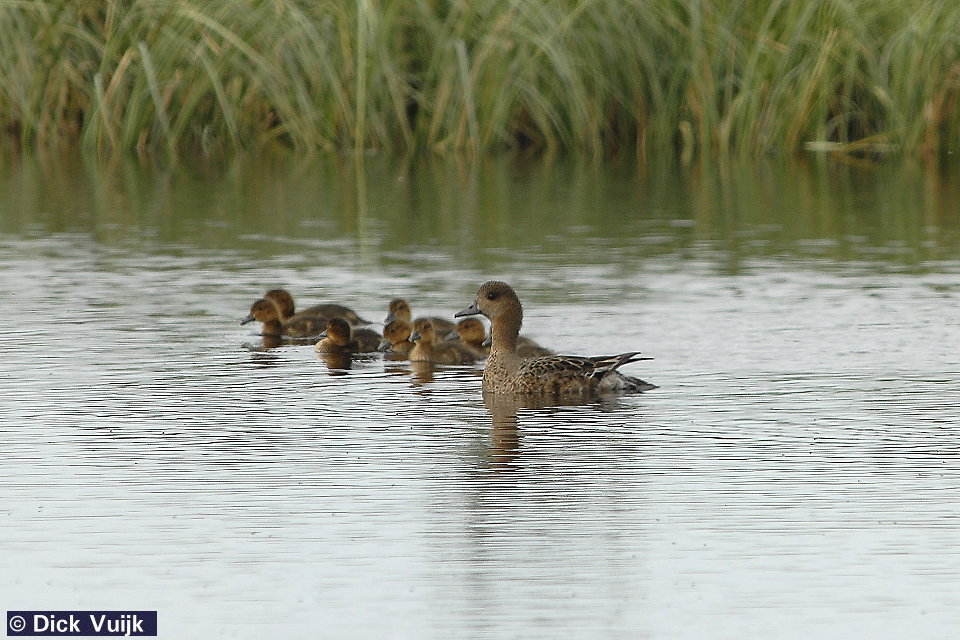 Photo of a female wigeon with chickens - Click for Full Size Image