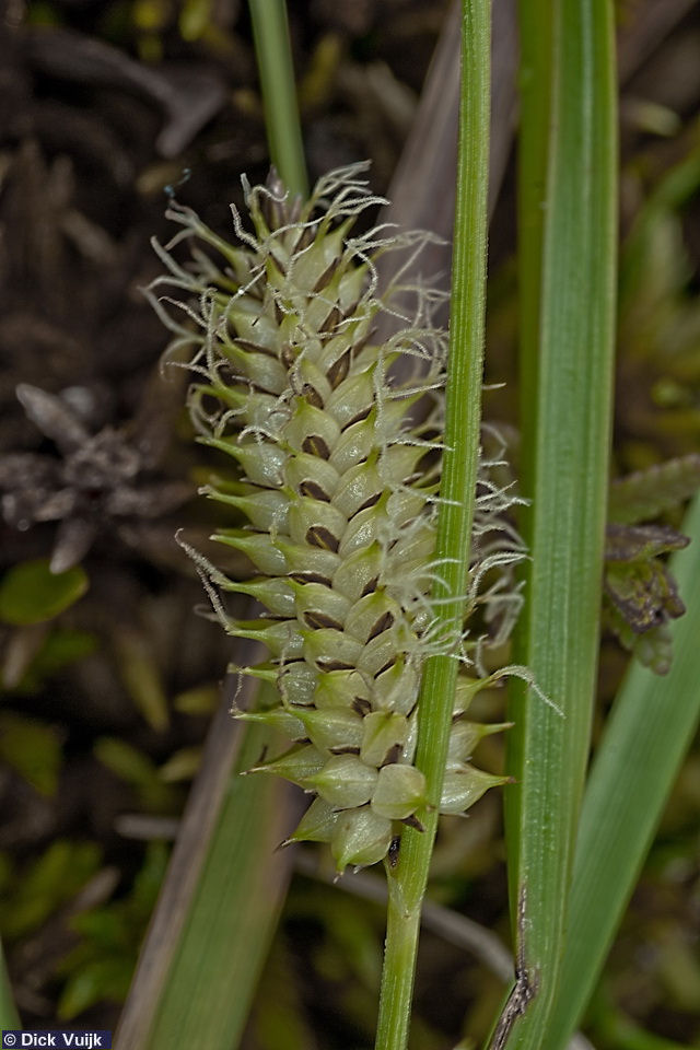Photo of female inflorescence / spike of the Bottle Sedge, Carex rostrata - Click for Full Size Image